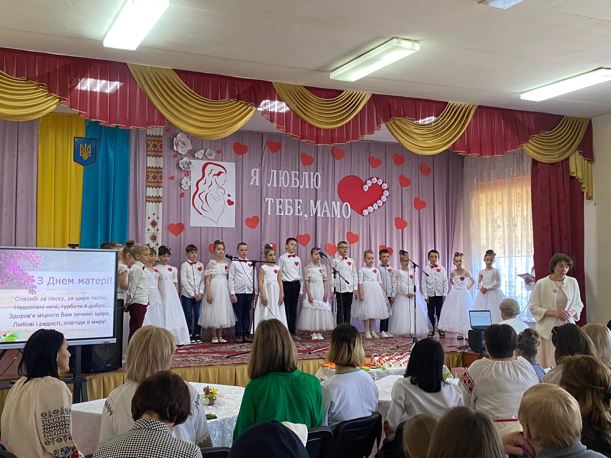 Також третьокласники мелодійно співали пісень, танцювали з мамами вальс. А потім весь зал, всі глядачі, затамували подих, коли на сцені мами заспівали для своїх діточок пісню "А сорочка мамина біла-біла". Це був надзвичайний сюрприз для дітей.
