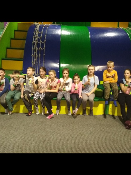 Потім усі дружно розважались в Дитячій планеті. Стрибали на батутах, каталися на тарзанці, кидали м’ячі, блукали по лабіринті, смакували морозивом. Смачно пообідали та радісні, задоволені, усміхнені повернулися додому.